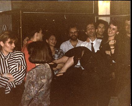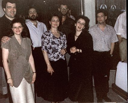 Od onih koji su u grupi i jos okrenuti napred, tu su Slobodan Ivanović Bic, Dragana Sredojević, Coja Marković, Paki, Dejan i (raspevana) Maja Ivanović.