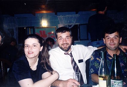 I tako stigosmo do petnaestogodišnjice... Slike su bolje, tu je već bio bolji foto-aparat, jelda, napreduje tehnika. Proslava je bila u nekom kao brodu gde smo se bezdušno skuvali, tako da su svi dobro oznojeni. Recimo oni na ovoj slici - Jeca Protic, Stojan Cucuz i Branimir Bijele.